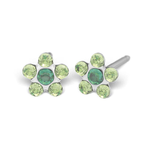 Studex steel flower with August peridot & May emerald Earrings, 5mm, 7512-6085