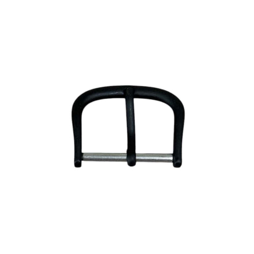 Pin buckle for leather straps, plastic coating black, 16 mm