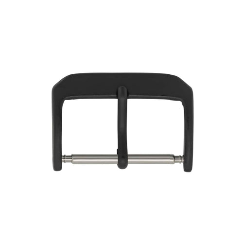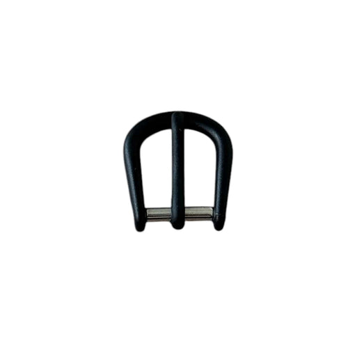 Pin buckle for leather straps, plastic coating black, 18 mm