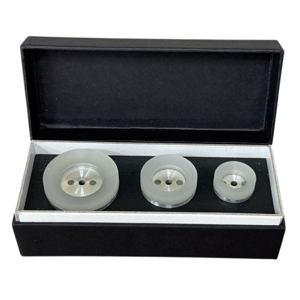 This premium set is specifically designed to work seamlessly with the renowned Bergeon 5700-Z case opener, a trusted tool among professional watchmakers. The Swiss-made set consists of three durable Adipren lower case-holders in sizes 19 mm, 26 mm, and 34 mm.