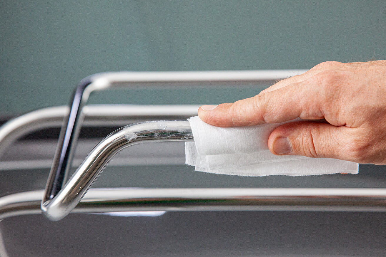 Wipe clean and buff with a clean cloth for a uniform finish.