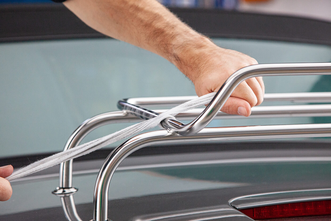 After polishing, use the included sandpapers to recreate the brushed/matt structure. Use steady, consistent strokes in the direction of the original grain.