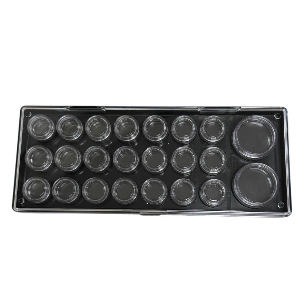 The key to the 6088-D’s utility lies in its transparent cover, providing immediate and effortless visibility of its contents. Inside, you’ll discover 23 small plastic boxes, perfectly sized for organizing a wide range of items. Ideal for watchmakers, jewelers, and anyone requiring precise storage.